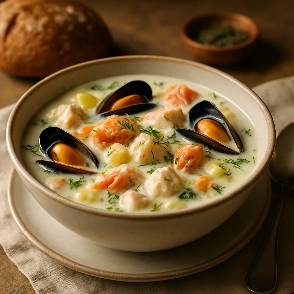 A rich and creamy chowder loaded with fresh seafood, perfect for a coastal Irish meal.