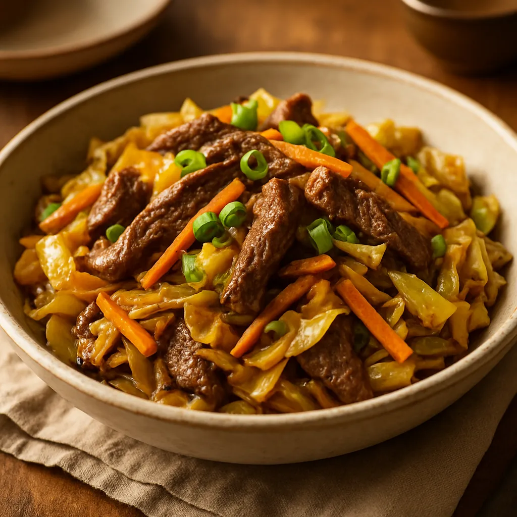 Tender strips of beef stir-fried with cabbage and carrots, a quick and healthy Irish-inspired dinner.