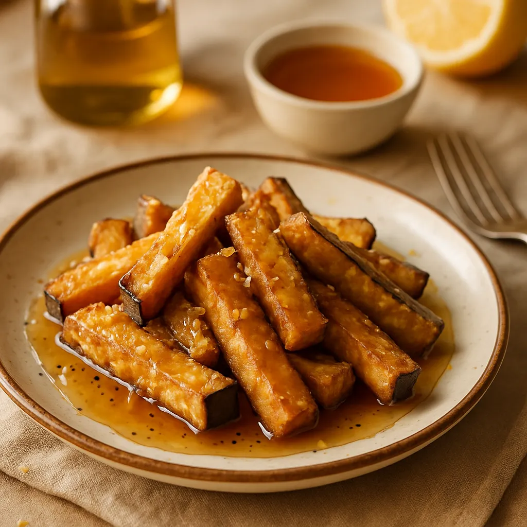 Fried eggplant drizzled with honey, a sweet and savory dish from Andalusia.