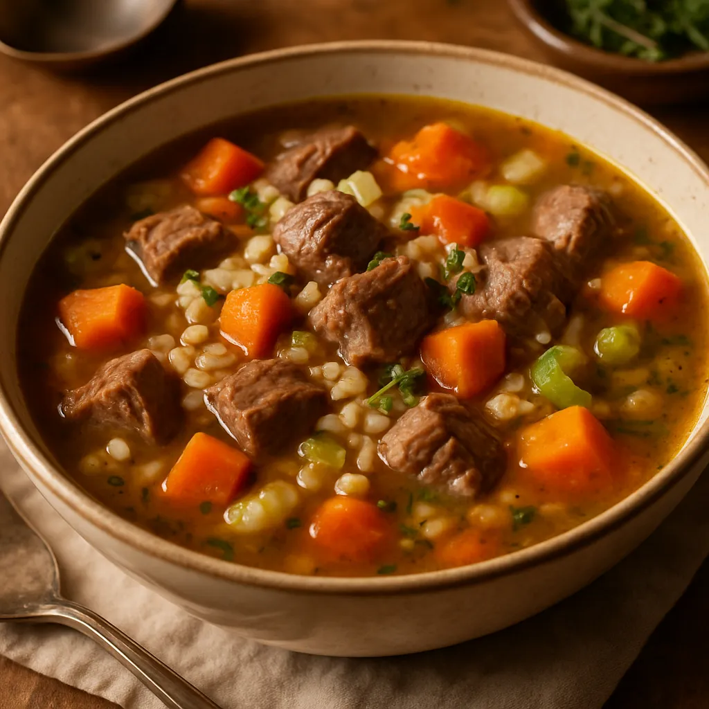 This rustic soup features tender lamb and nutty barley, a warming dish for any occasion.