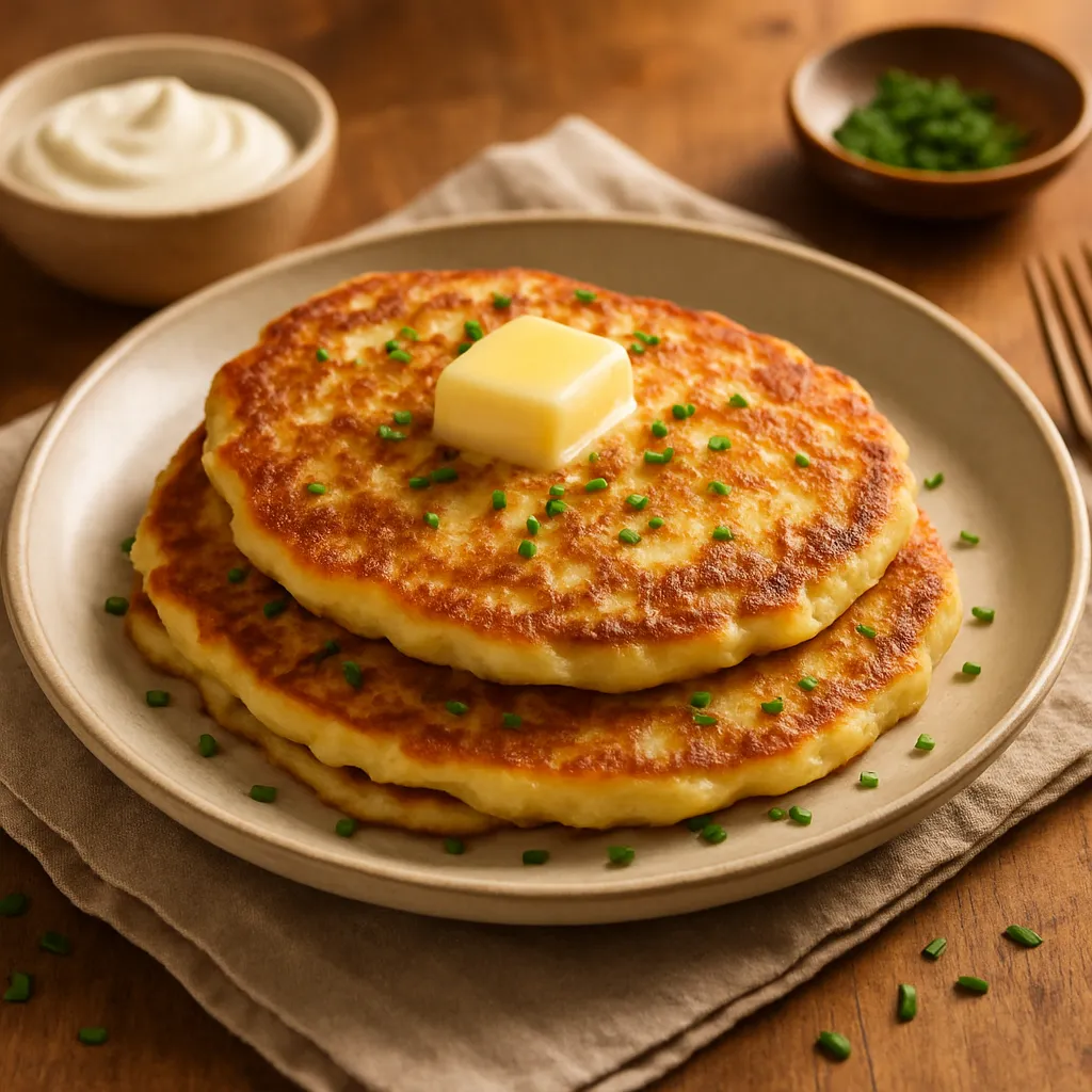 Traditional Irish potato pancakes made with grated and mashed potatoes, cooked to golden perfection.