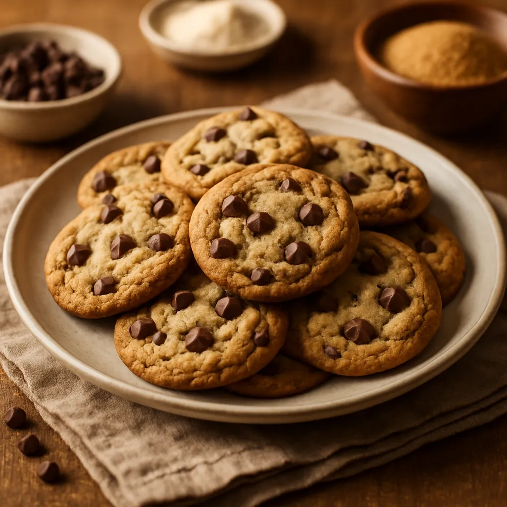 Indulge in these classic chocolate chip cookies, perfectly chewy and loaded with rich chocolate chips, making them an irresistible snack for any occasion.