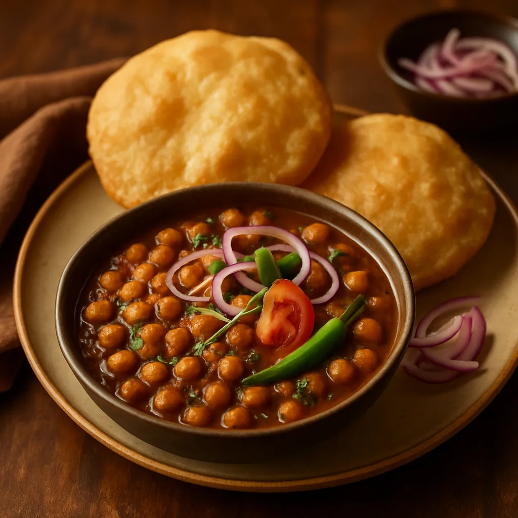 A classic North Indian dish featuring spicy chickpeas served with deep-fried fluffy bread.