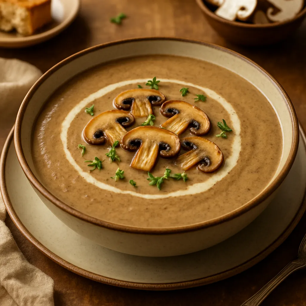 A rich and creamy soup made with fresh mushrooms, perfect for a cozy night in.