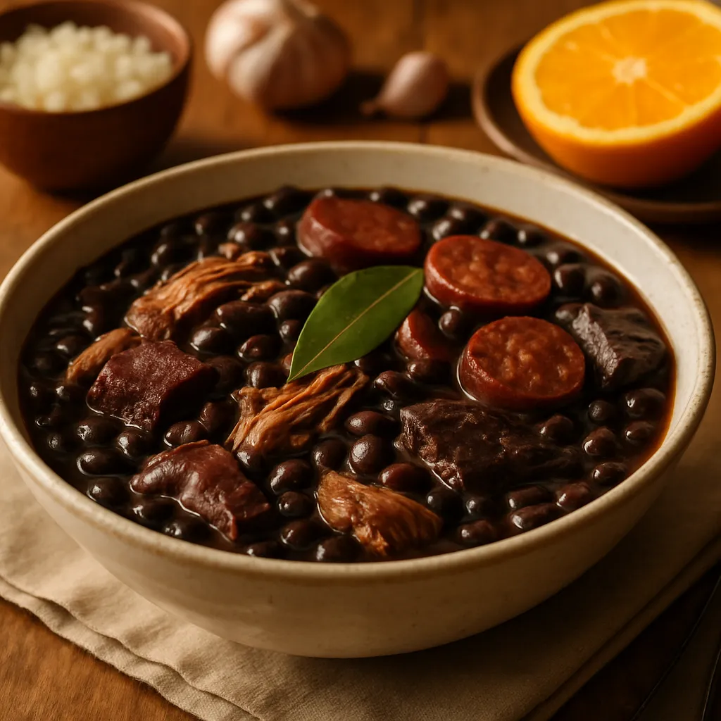 Savor the rich flavors of this traditional Brazilian Feijoada, a hearty black bean stew loaded with tender meats and spices.