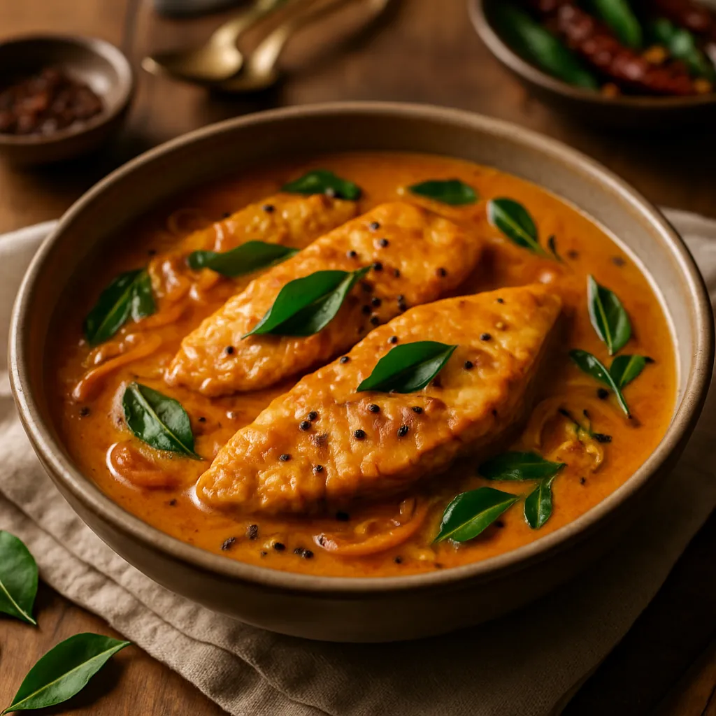 Fresh fish cooked in a tangy coconut milk gravy with spices, a staple from the coastal regions of India.
