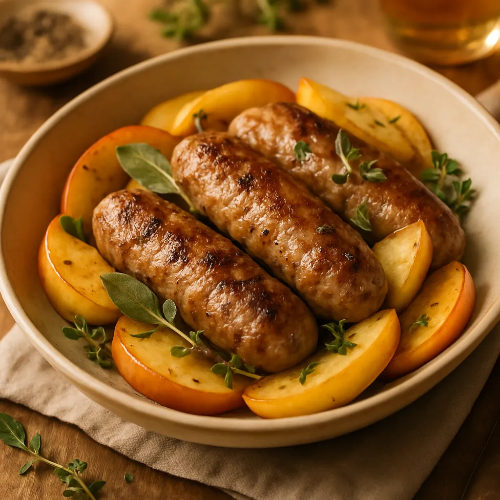 Homemade Irish breakfast sausages infused with apples for a sweet and savory morning meal.