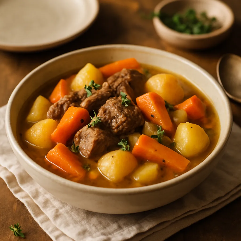A robust stew featuring tender lamb and a medley of root vegetables, simmered for a satisfying meal.