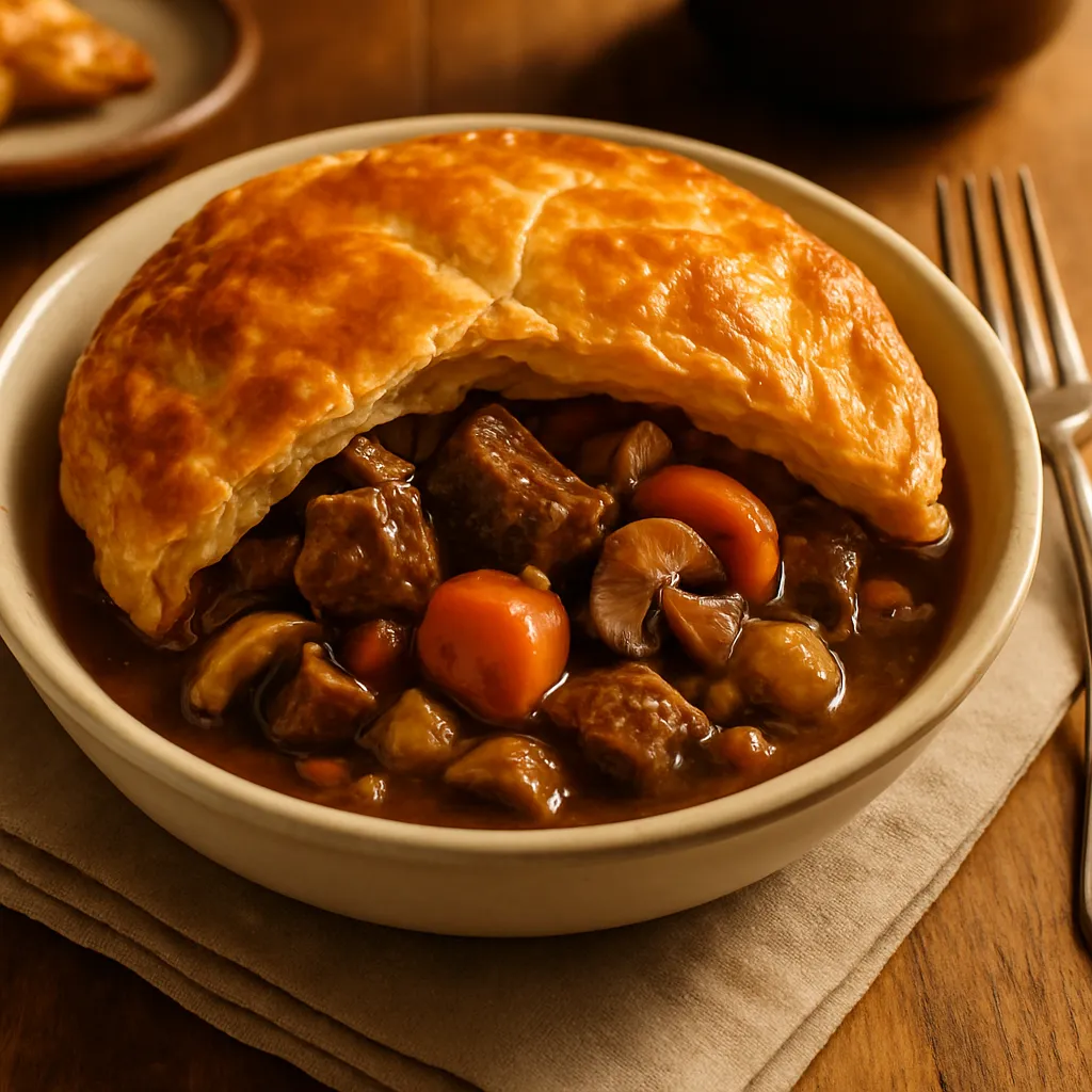 A rich pie filled with tender beef and ale, encased in flaky pastry for a hearty lunch.