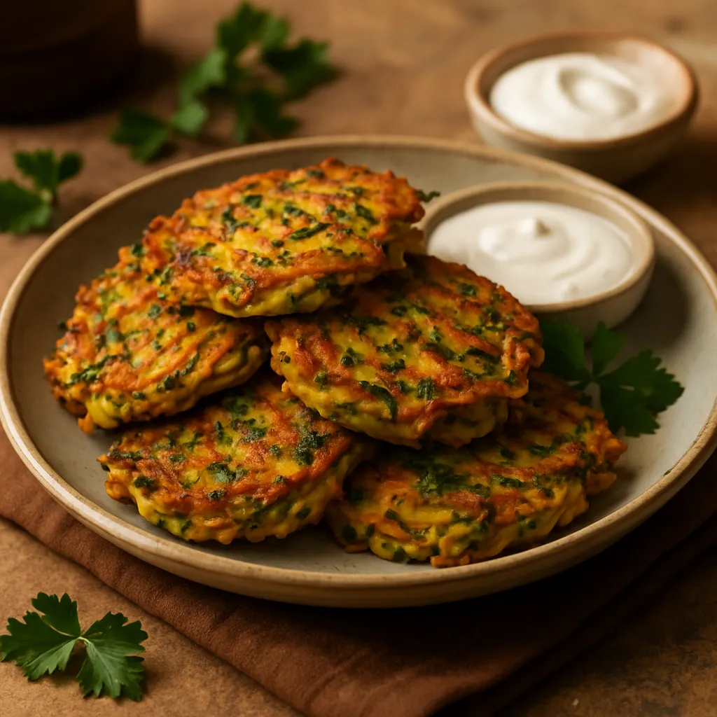 Crispy fritters made with a mix of seasonal vegetables, perfect as a side dish or a light dinner.