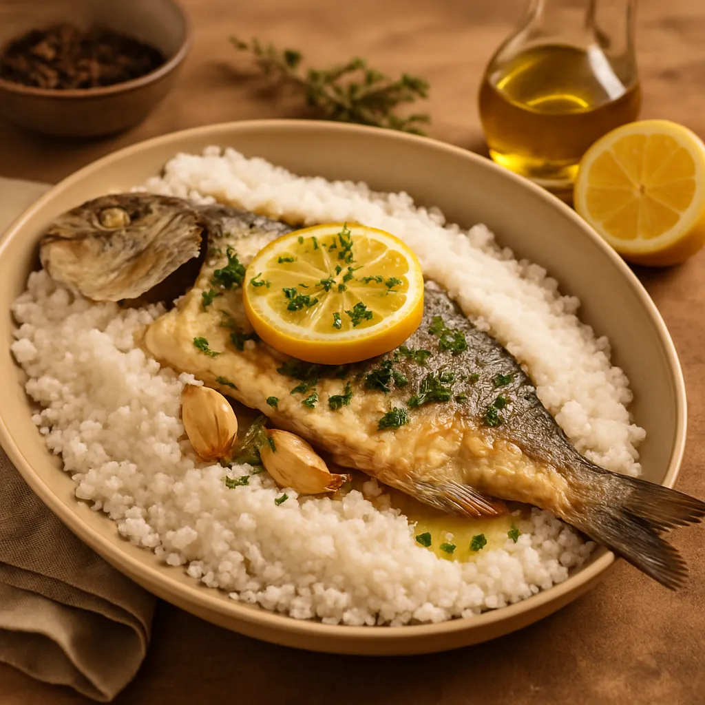 Whole fish baked in a crust of sea salt, locking in moisture and flavor, popular along the coast.