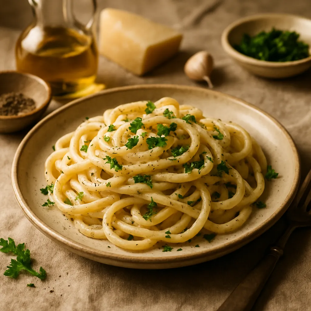 A classic Tuscan pasta dish made with hand-rolled pici noodles, cheese, and freshly cracked black pepper.