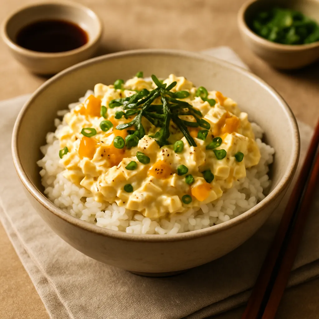 A quick and satisfying Japanese egg salad served on rice, offering a unique twist on the traditional sandwich.
