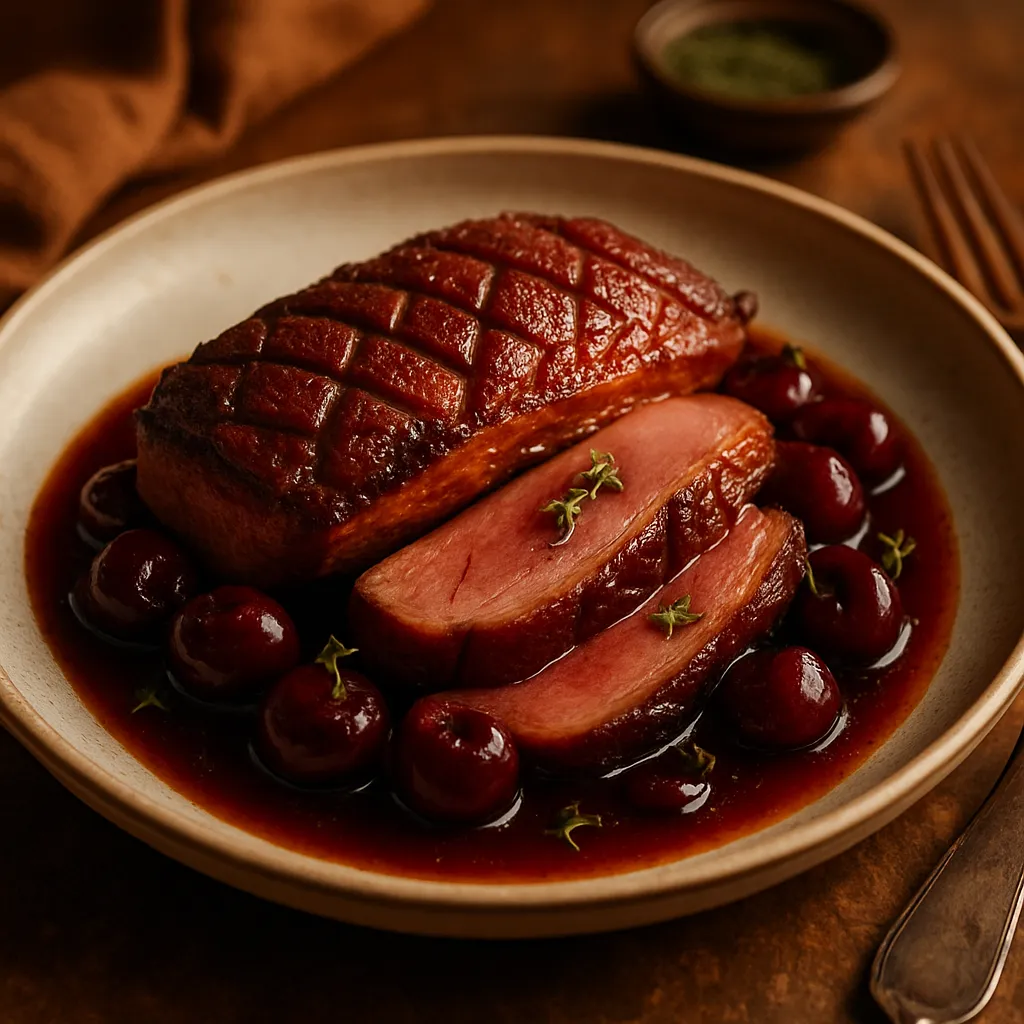 Succulent duck breast, smoked and finished with a sweet cherry glaze for a gourmet barbecue experience.