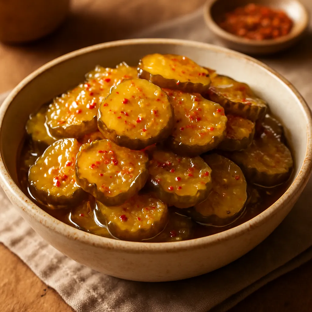 Enjoy the perfect balance of sweetness and heat with these homemade sweet and spicy pickle chips, a delightful snack for any occasion!