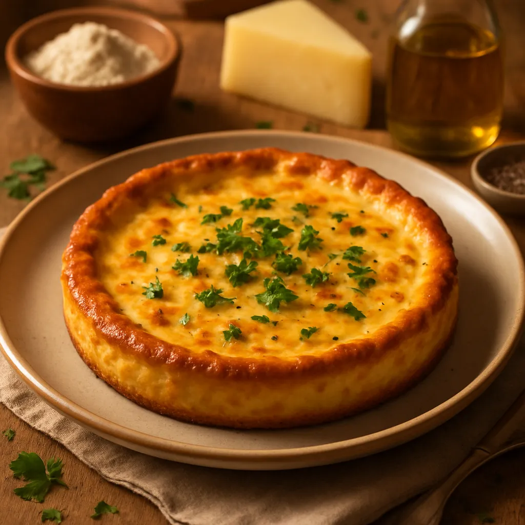 A savory cheese tart made with traditional Manchego cheese, perfect for a light lunch.