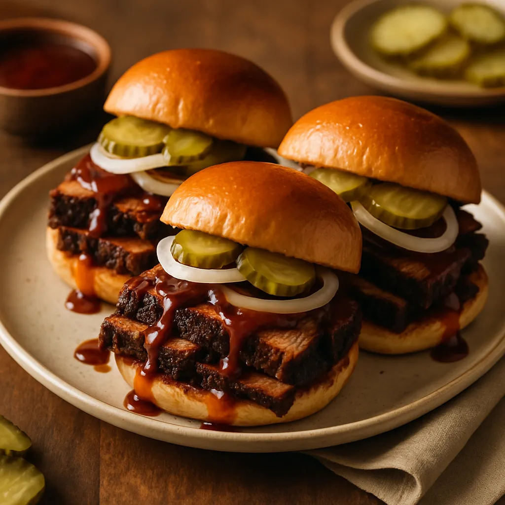 Savor the rich flavors of Texas Style Brisket Sliders, featuring tender brisket smothered in barbecue sauce, perfect for any snack or gathering.