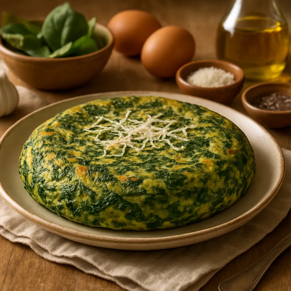 A Spanish omelette made with fresh spinach and eggs, perfect for a light and nutritious lunch.